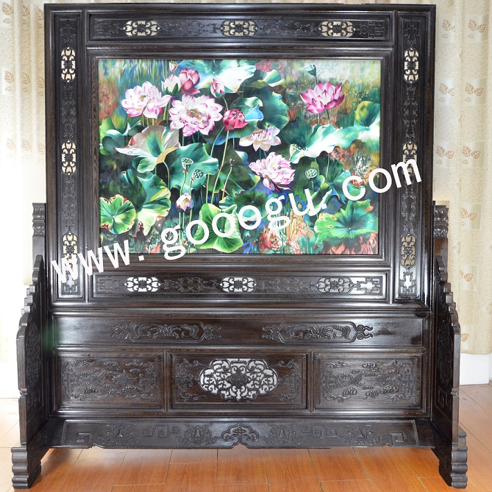 蘇繡精品屏風 滿繡隔斷 純手工精品 荷花 中式屏風